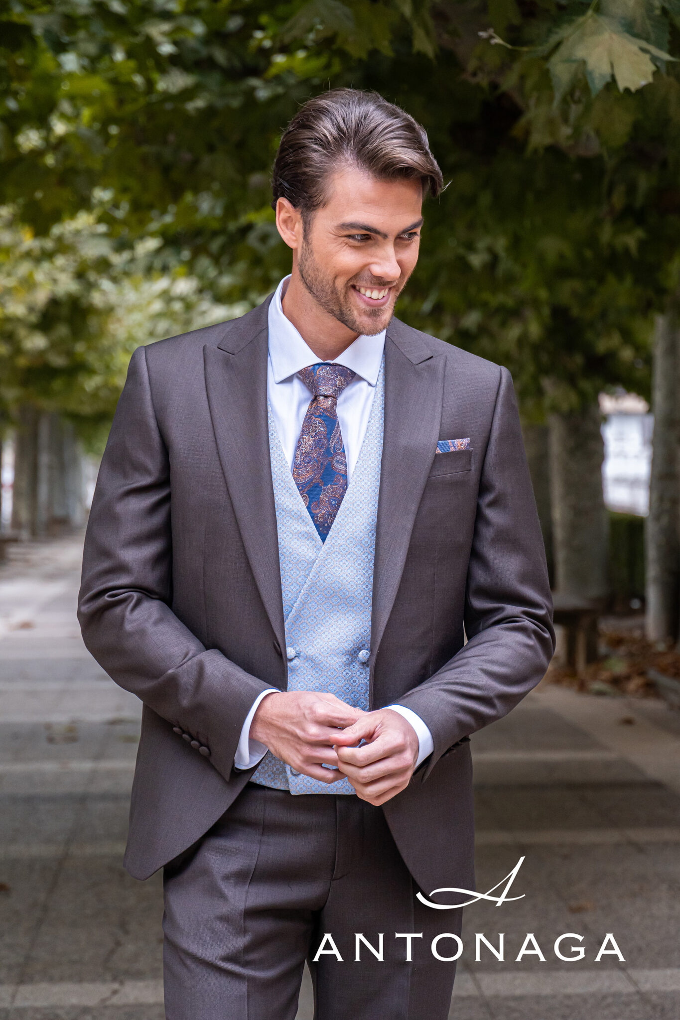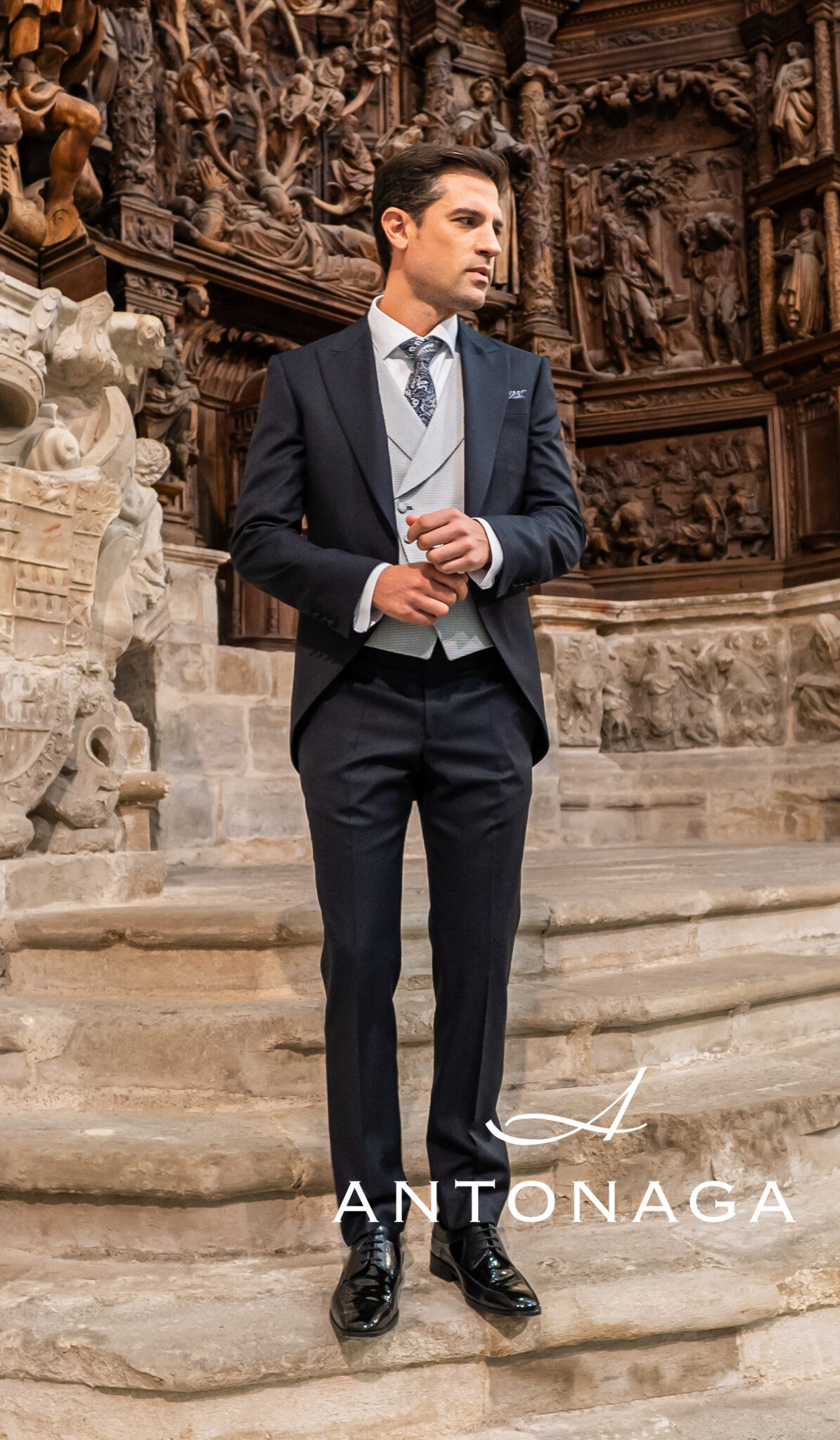 Antonaga es una marca que ha sabido fusionar la tradición sartorial con un enfoque moderno y sofisticado. Fundada por expertos en el arte de la sastrería, esta firma ha construido una reputación basada en la calidad y la atención al detalle. Sus trajes se distinguen por su corte impecable y el uso de telas de alta gama, lo que garantiza una experiencia de lujo en cada prenda. La filosofía de Antonaga es que cada traje debe contar una historia, y en Antonio Ñacle, nos enorgullecemos de ser portadores de esas historias.